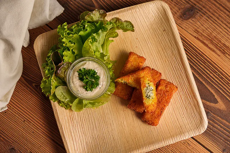 Kartoffeltaschen mit Frischkäse-Kräuter-Füllung und Kartoffelpuffer